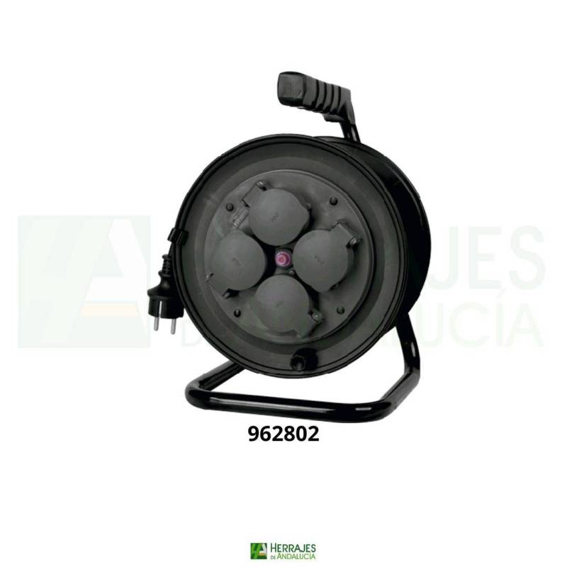 Enrollacable de 50 metros 4 tomas color negro marca Yfer.
