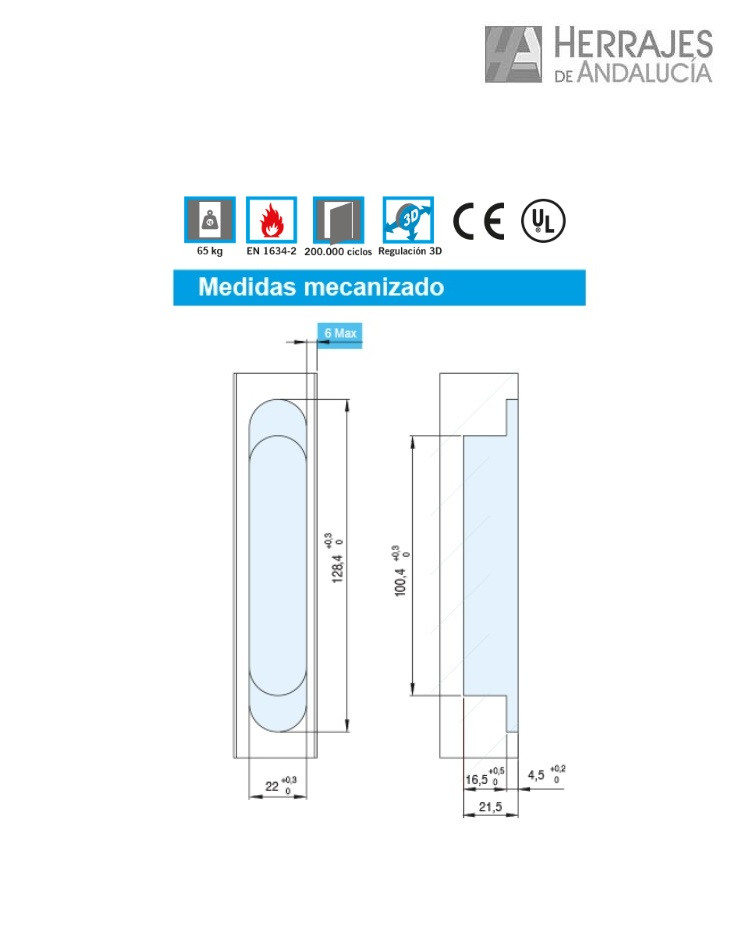 Profundidad (mm) | Grosor mínimo puerta (mm) |