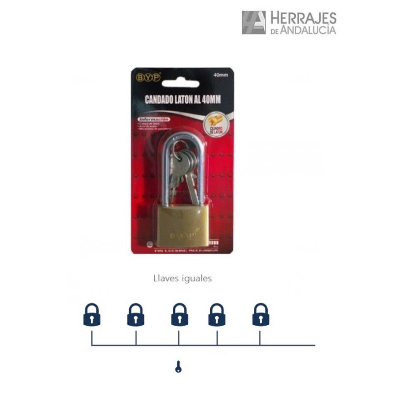 CANDADO LATON BYP ARCO LARGO 302 40mm. LLAVES IGUALES