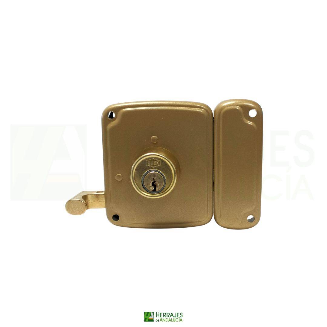 CERRADURA SOBREPONER 1 PUNTO 4125 CON CILINDRO..80MM DERECHA ACERO PINTADO ORO