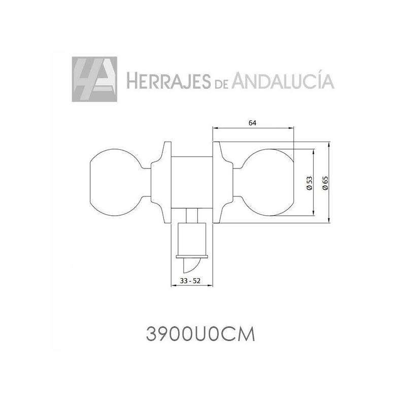 Pomo bola TESA acabado cromo mate con picaporte ajustable.
