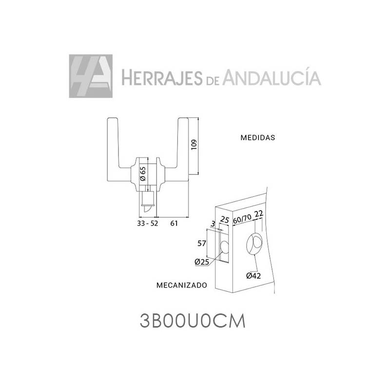 - Distancia de entrada: picaporte unificado, válido para 60 y 70mm.