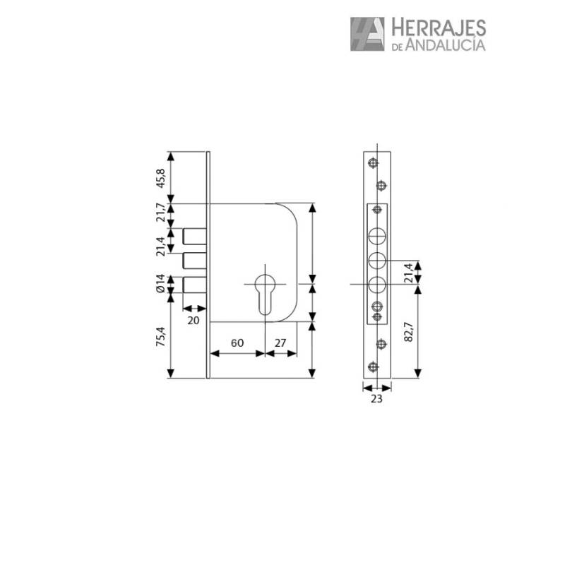 CERRADURA R201B666N PUNTO 60. NIQUEL. LLAVE SOLA CON BOMBILLO T60 30X30