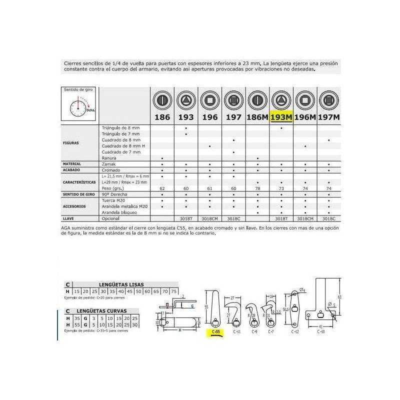 Cierre Triángulo de 7 Ref.193M. Largo 29 mm.