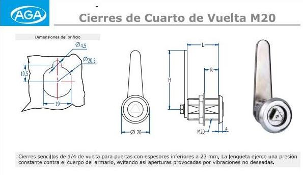Accesorios suministrados: Tuerca zamak, arandela y garfio.
