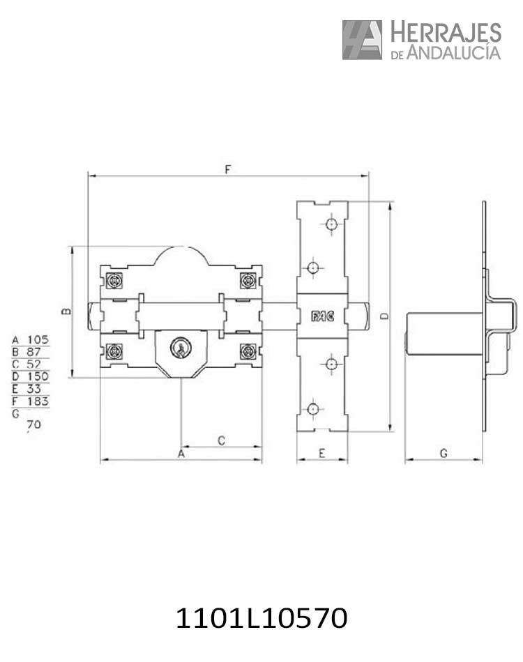 CERROJO PINTADO 1101-L/105 | SISTEMA LLAVE-BOTÓN | CILINDRO 70MM