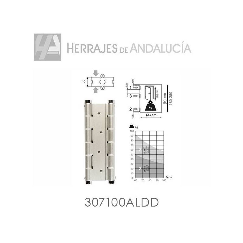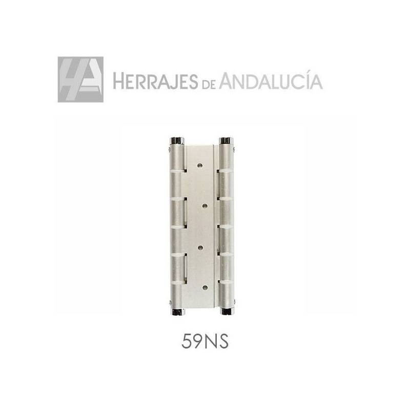 Bisagra doble acción de canto cuadrado, niquel. Autocierre para puertas de 32mm.