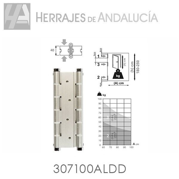 - Capacidad de carga 90 Kg. (3 bisagras)