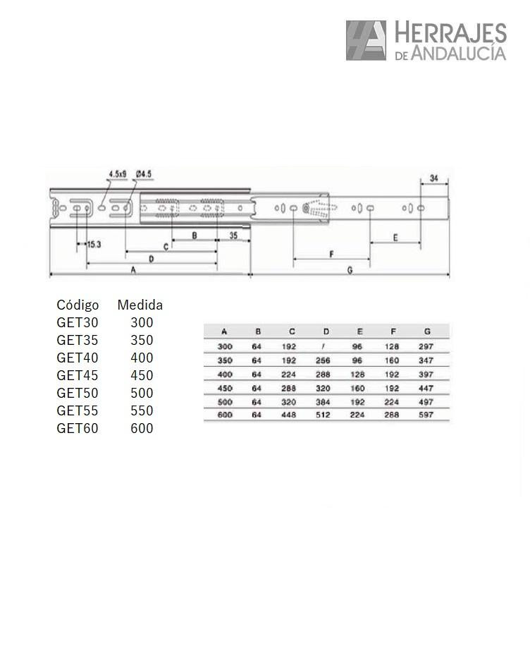 JUEGO GUÍAS CAJÓN BOLAS CON FRENO.. 450MM GETSOFT H45