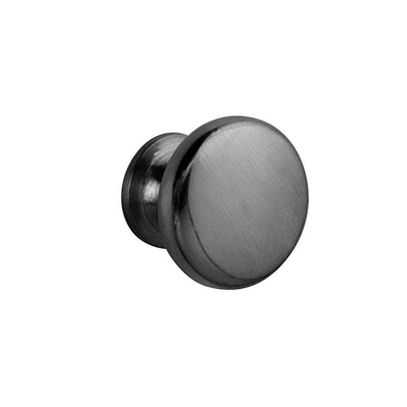 Pomo Chato Plano en acabado negro mate. Material Zamak. Medida: Diámetro 34 mm.