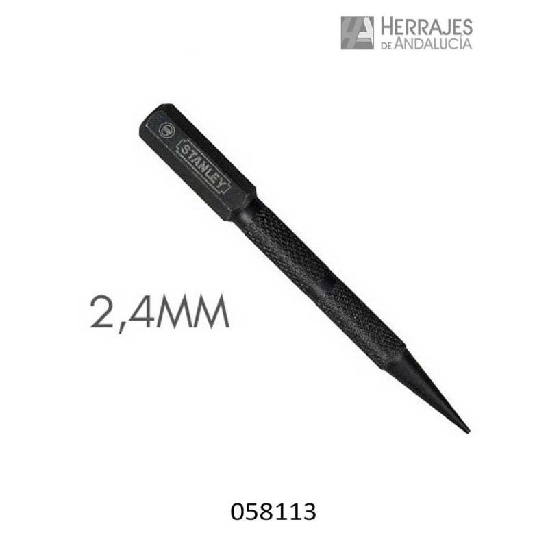 Botador de acero golpe de 2,4mm Stanley. Alineacin de acero templado. Cuerpo moleteado. Cabeza cuadrada. Puntas biseladas.