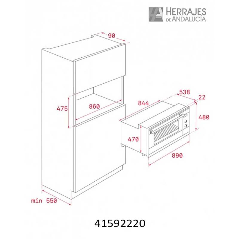 Altura (mm) | Anchura (mm) | Profundidad (mm) | Capacidad neta (L) | Capacidad bruta (L) |