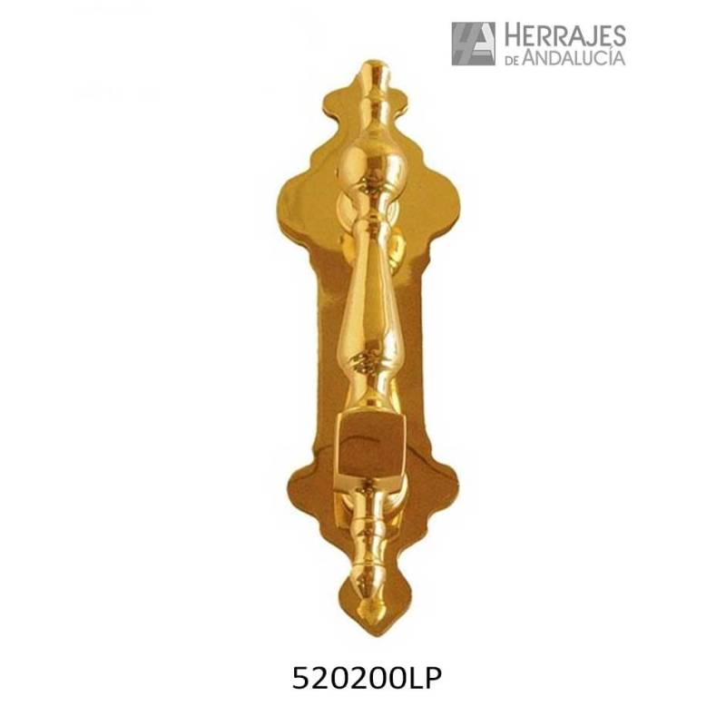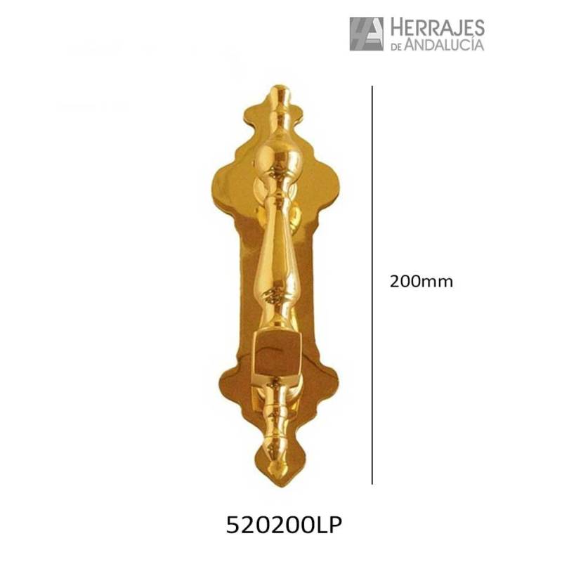- Aldaba para puerta de entrada fabricada de Latón con acabado pulido que tiene una medida de 200 mm de alto.