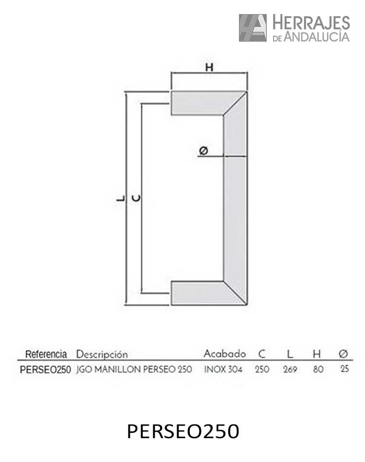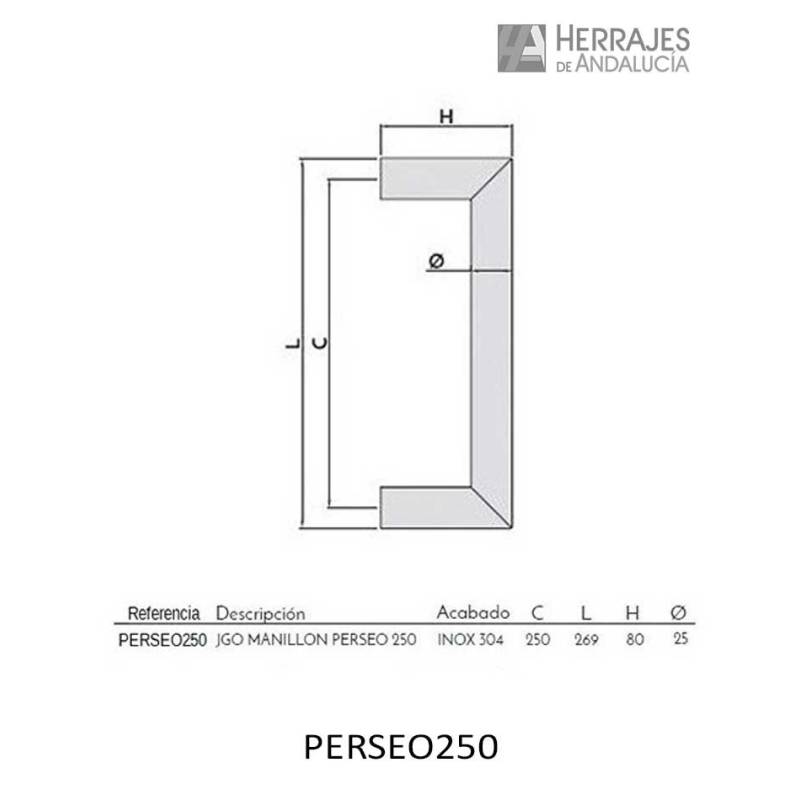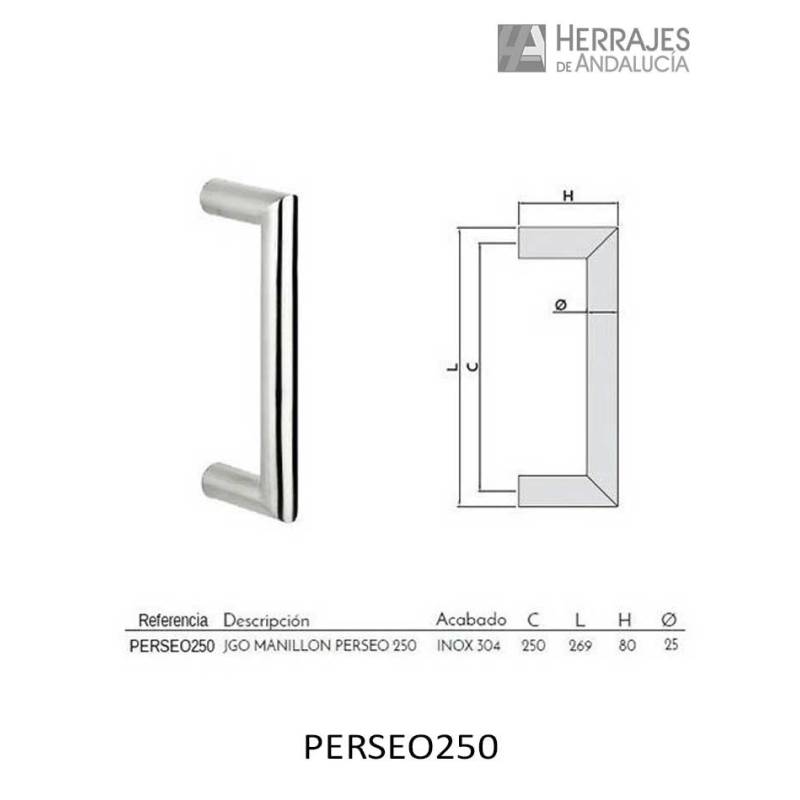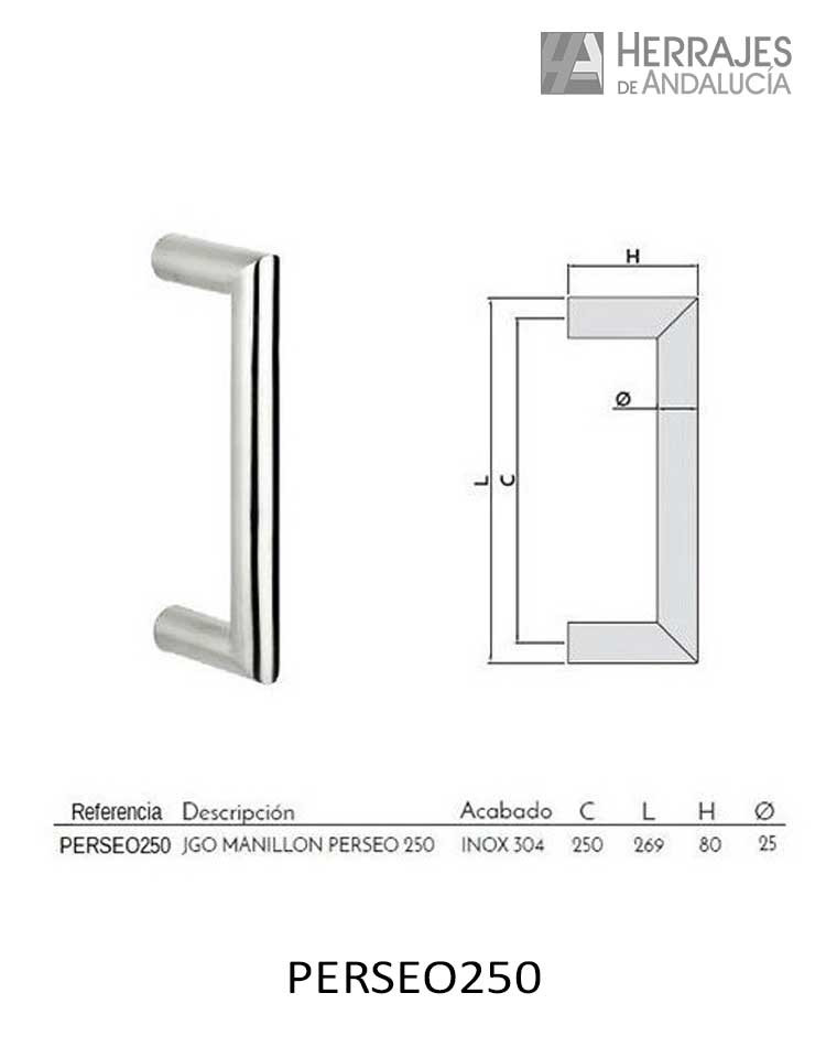 JUEGO MANILLÓN PERSEO SIN ROSETAS INOX AISI304.. 250MM
