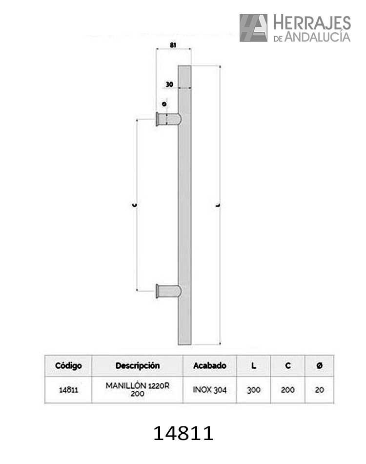 Manillón tubular redondo fabricado en acero inoxidable AISI 304, especialmente adecuado para puertas correderas de madera, vidrio o metálicas. Su diseño limpio, robusto y funcional permite un agarre cómodo sin sobresalir en exceso, lo que lo hace ideal tanto para correderas exteriores como interiores.