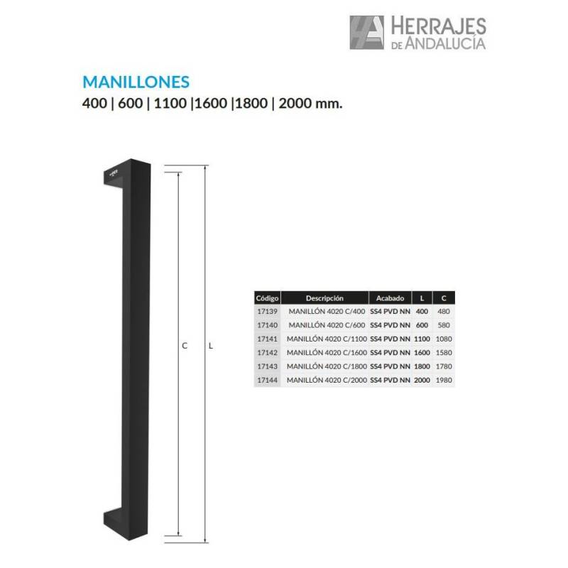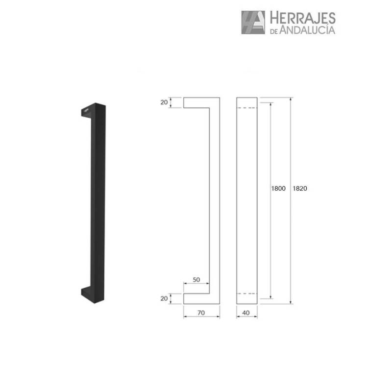 MANILLÓN CUADRADO 4020 SS4 | REVESTIMIENTO PVD NEGRO | PUERTAS CORREDERAS, DE VIDRIO O MADERA..1800MM