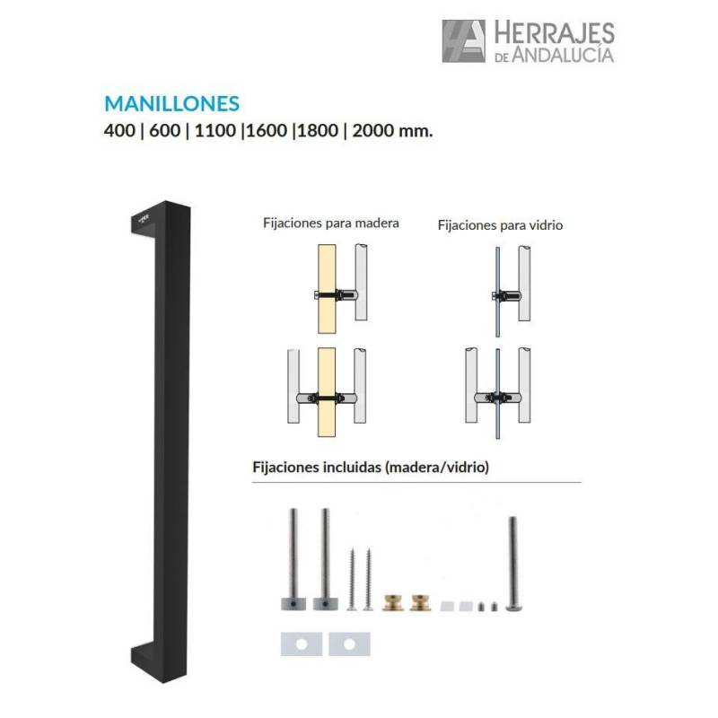 Manillón cuadrado con revestimiento PVD en acabado negro.