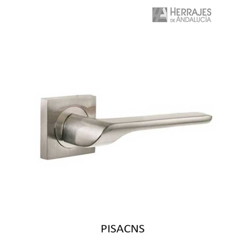 Manivela Pisa con roseta cuadrada acabado niquelado satinado.