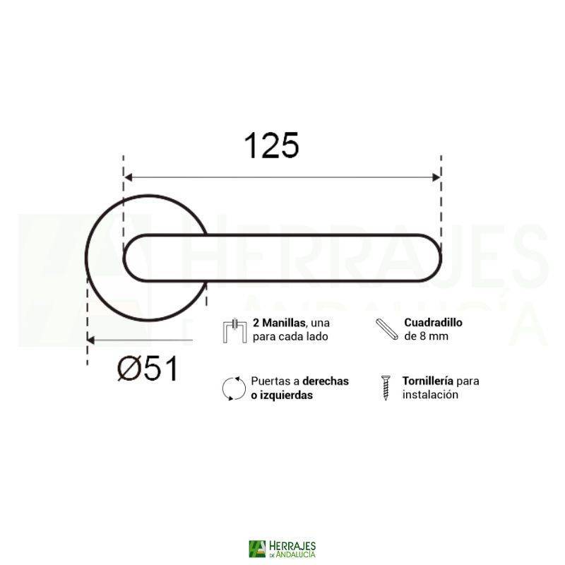 | Composición | 2 manivelas (una para cada lado) con roseta redonda |