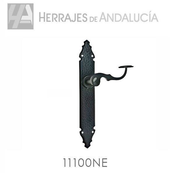 JUEGO MANIVELA CON PLACA EN HIERRO FORJADO EN ACABADO MARTILLEADO EN COLOR NEGRO