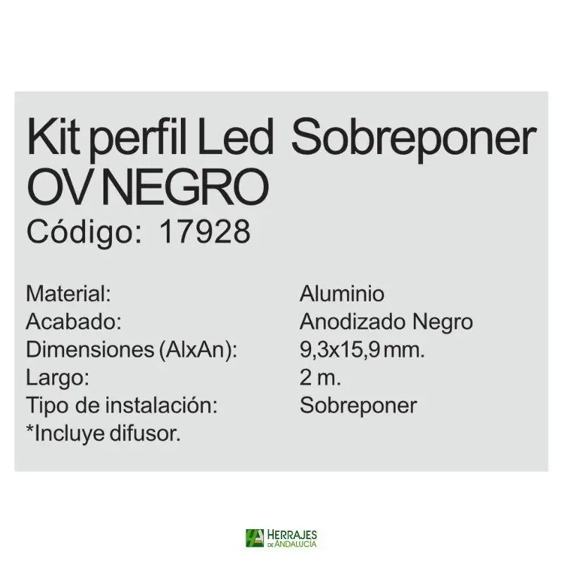 KIT PERFIL LED SOBREPONER MODELO OV NEGRO