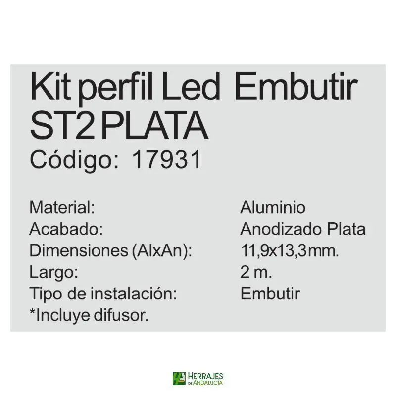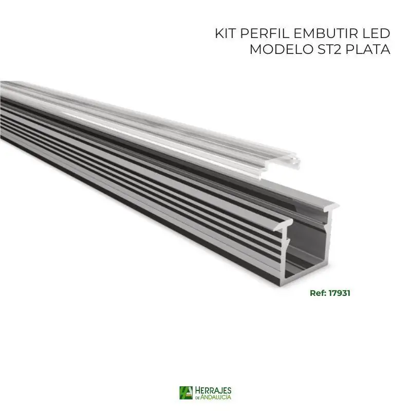 Kit perfil led de embutir Modelo ST2 acabado plata