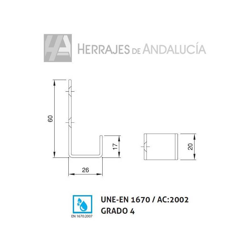 Percha simple para cabina sanitaria fabricada en acero inoxidable 304 y diseño rectangular. Diseño y acabado estético y funcional. ¡Producto certificado!