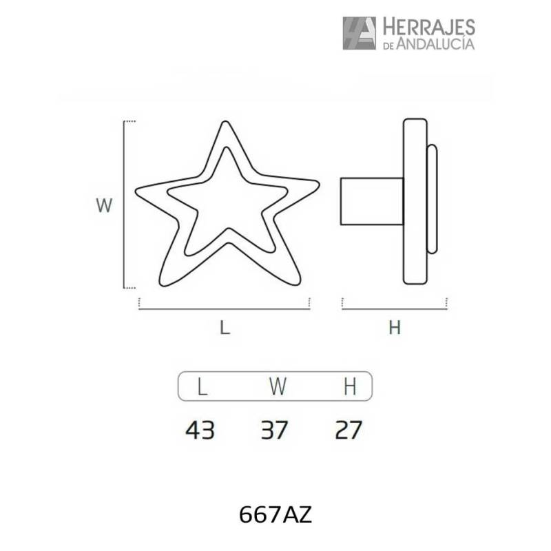 - Este tirador estrella azul tiene unas dimensiones de 43mm de ancho, 37mm de alto y 27mm de fondo y se instala muy fácilmente mediante un tornillo pasante.