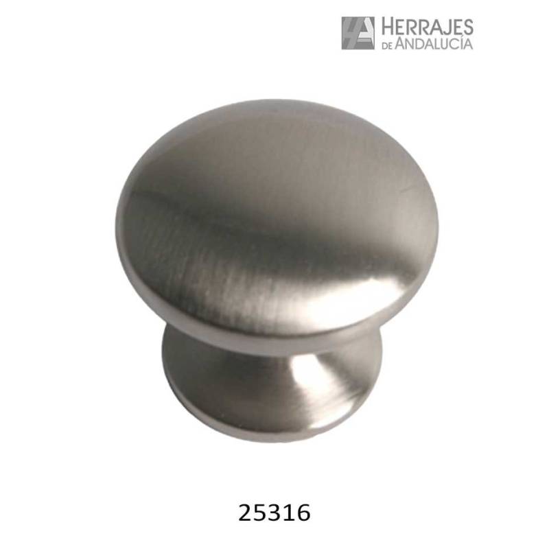 Pomo para cajón o puerta de diseño clásico y acabado en níquel cepillado con 30mm de diámetro.