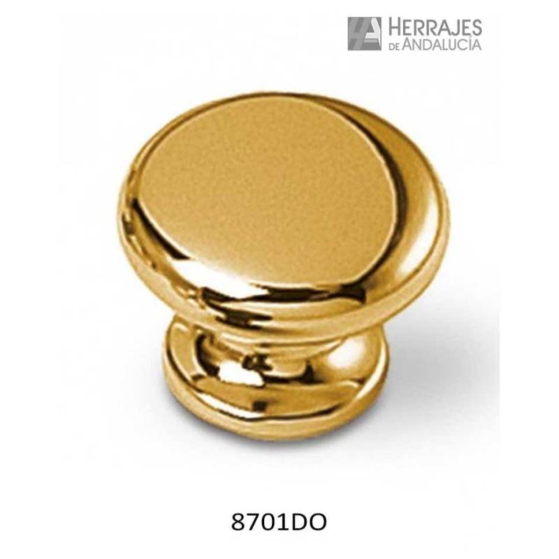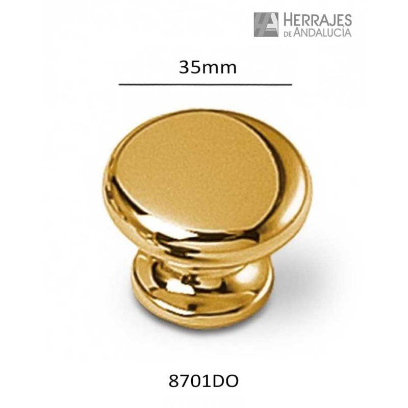 Pomo redondo en acabado dorado de 35mm de diámetro, ideal en sus acabados rústicos para mobiliario de corte clásico o más contemporáneo.