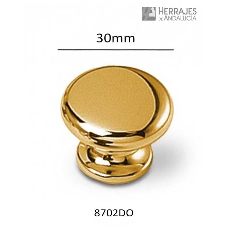 Pomo redondo en acabado dorado de 30mm de diámetro, ideal en sus acabados rústicos para mobiliario de corte clásico o más contemporáneo .