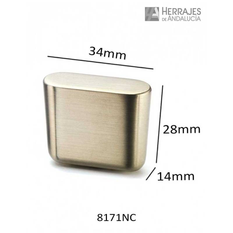 - Se trata de un mini pomo rectangular de cantos redondos, perfecto por su diseño para dar un toque minimalista a muebles de baño, cajoneras, y a cualquier mueble auxiliar.