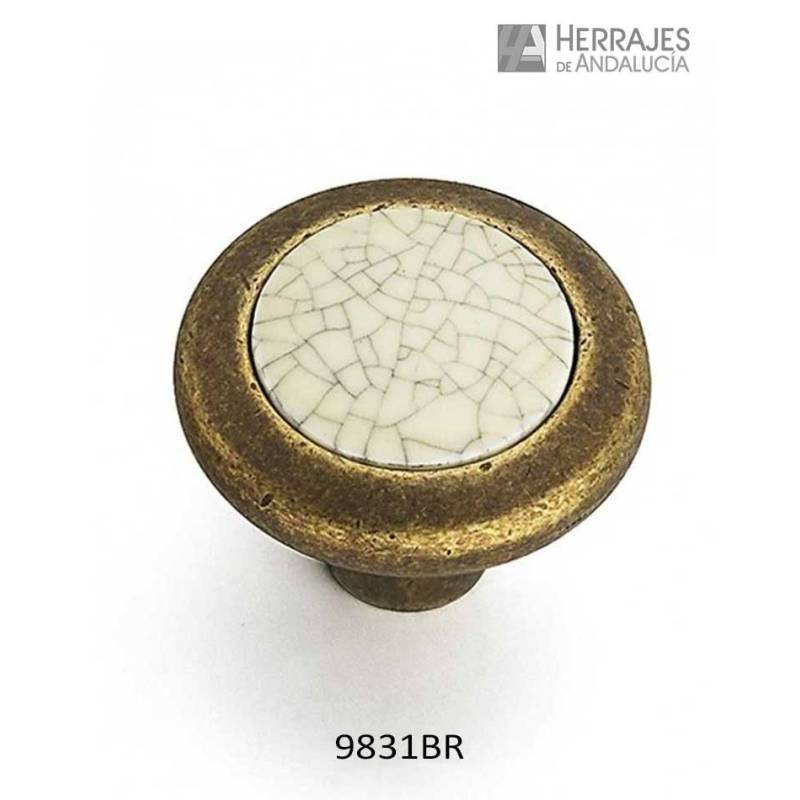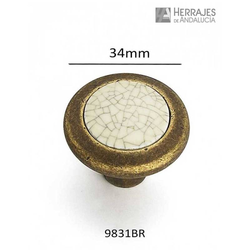 Pieza en acabado de bronce rústico de 34mm de diámetro con delicada porcelana de acabado 'craquelé'.