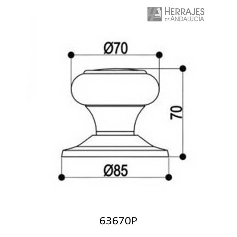 - El pomo y la placa tienen un diámetro de 70mm y 85mm respectivamente y un fondo de 70mm.