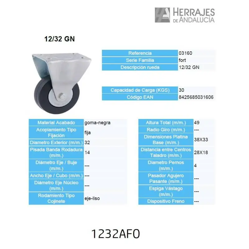 RUEDA AFO 12/32 CON SOPORTE FIJO.. MAX 30 kgs