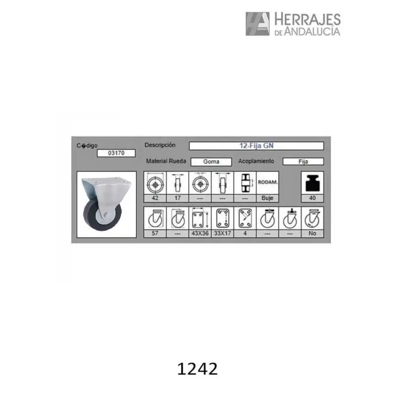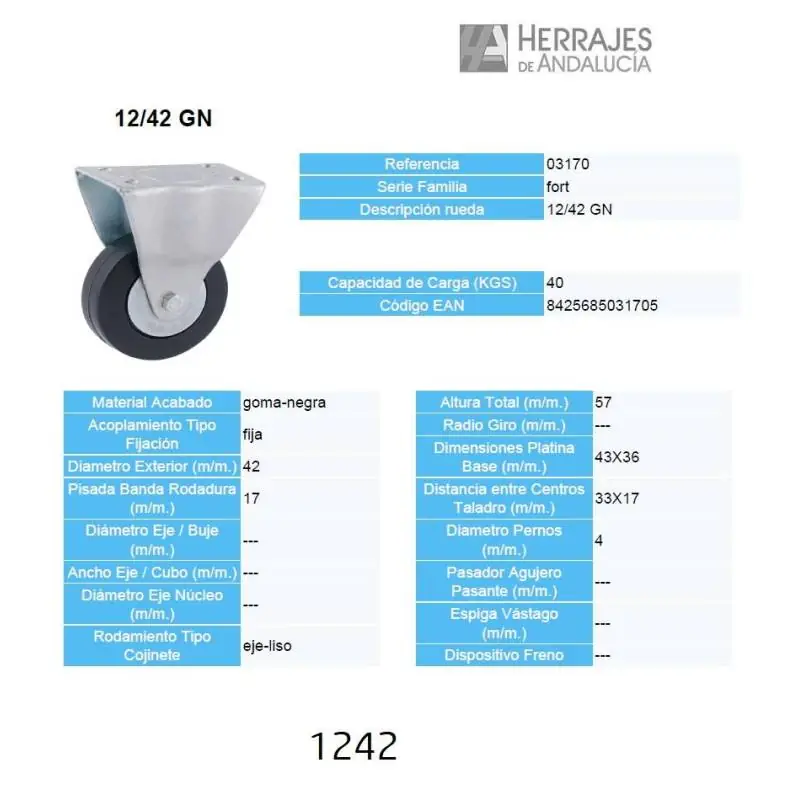 RUEDA AFO 12/42 CON SOPORTE FIJO.. MAX 40 kgs