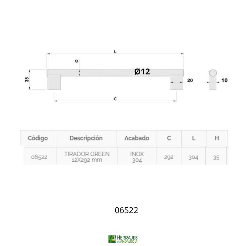 TIRADOR GREEN PARA MUEBLE DE ACERO INOXIDABLE..304MM C292 Ø14 H35