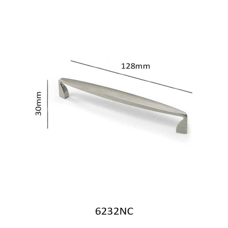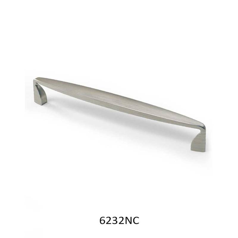 Tirador vanguardista y original en acabado de níquel cepillado que aporta personalidad a ambientes como cocinas y otras estancias del hogar.