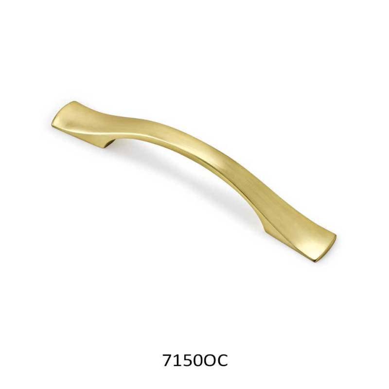 Con un estilo un tanto retro, este tirador en acabado oro cepillado recuerda al asa de una maletín, tiene unas formas fluidas que se acoplan al mueble a la perfección.