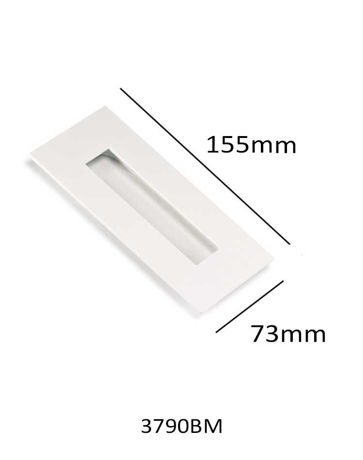 Placa de metal rectangular de 155x73mm de aspecto moderno y actual gracias a su acabado blanco mate. Ideal para puertas correderas.