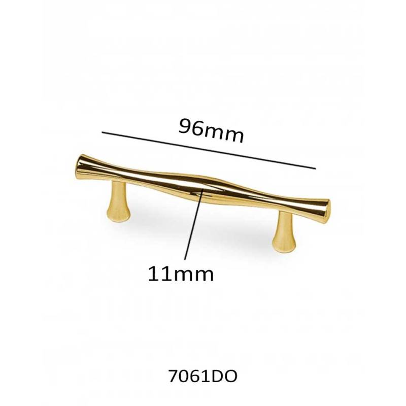 Tirador de 96mm de largo y 11mm de diámetro con forma de reminiscencias orientales en acabado dorado, lo hace perfecto para dar un toque muy original a los muebles en los que se instale.