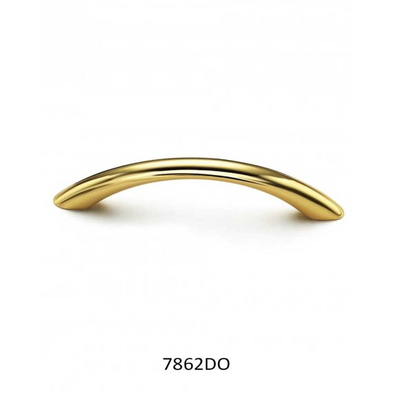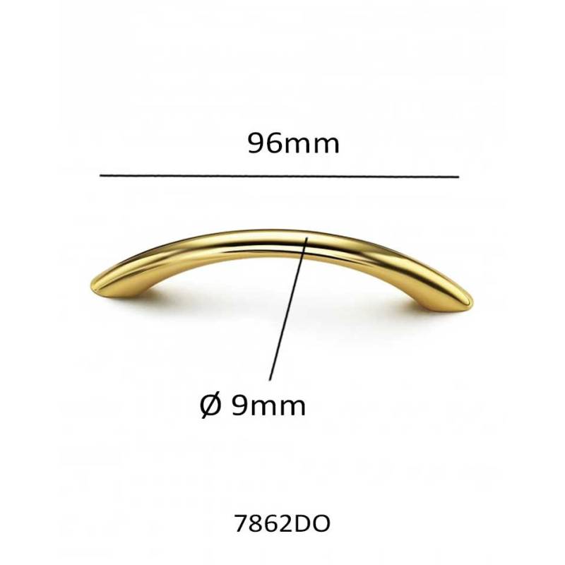 Tirador en forma de arco perfecto de 96mm de largo y 9mm de diámetro. Un auténtico clásico disponible en acabado dorado.