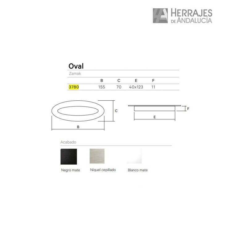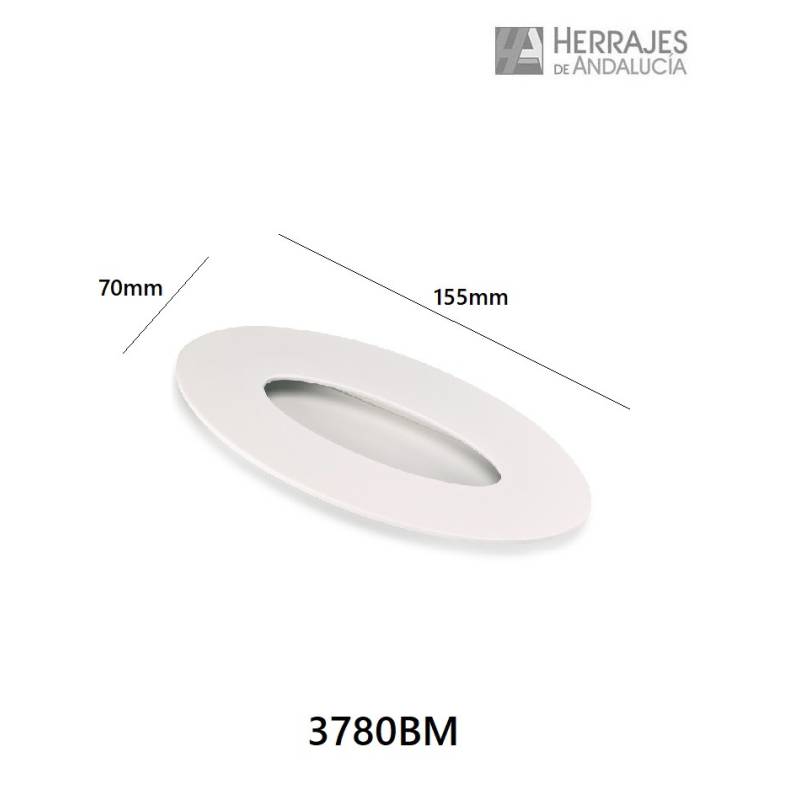 TIRADOR OVALADO 3780. ACABADO BLANCO MATE.. 70x155mm