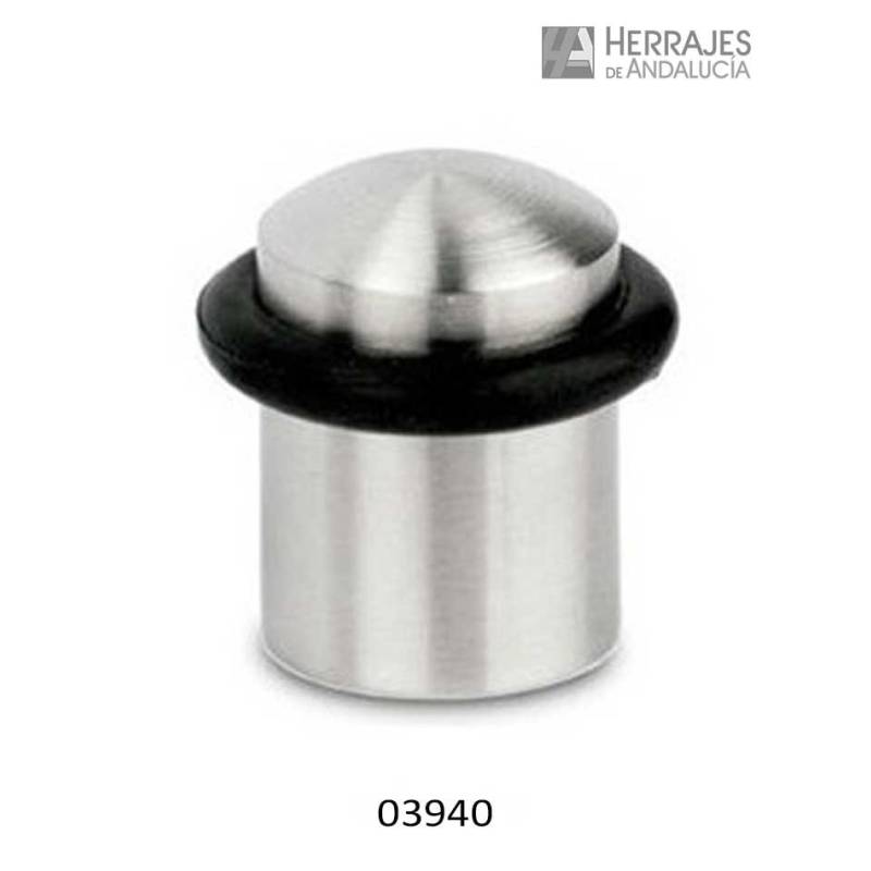 Tope de puerta cilndrico fabricado en acero inoxidable.
