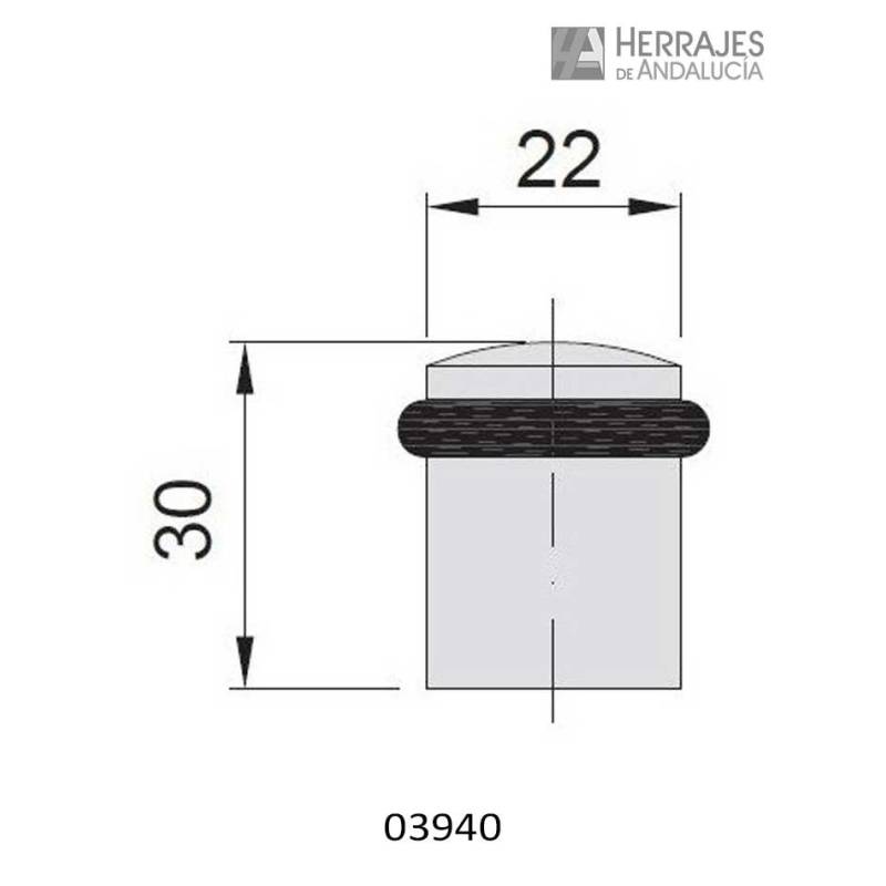 - Diámetro del cilindro 22mm. Altura total del tope 30mm.