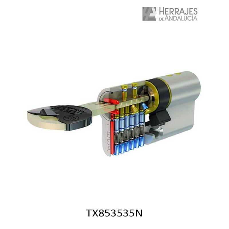 - El TX80 es un cilindro de alta seguridad, de llave reversible de puntos y 8 pitones.